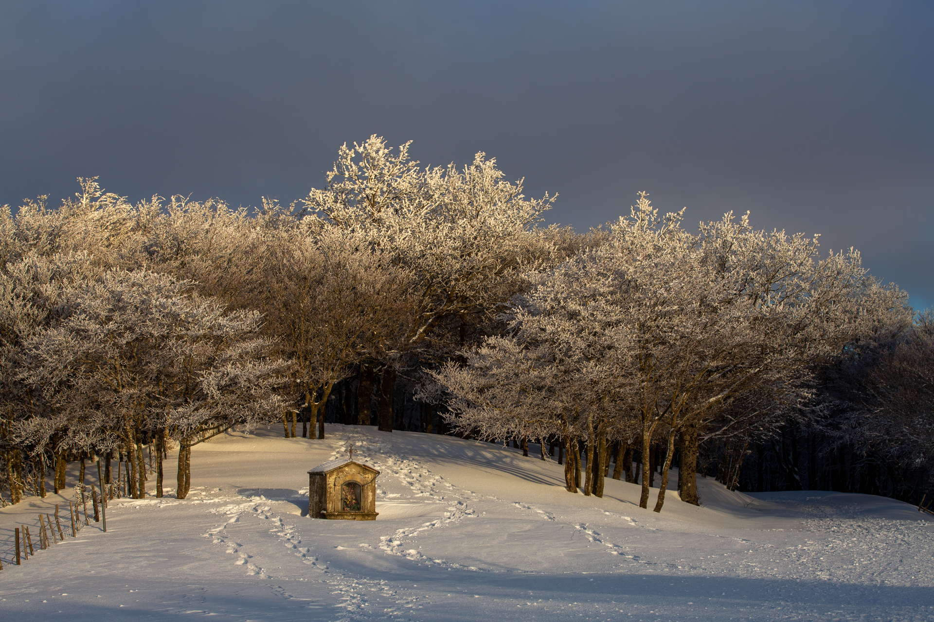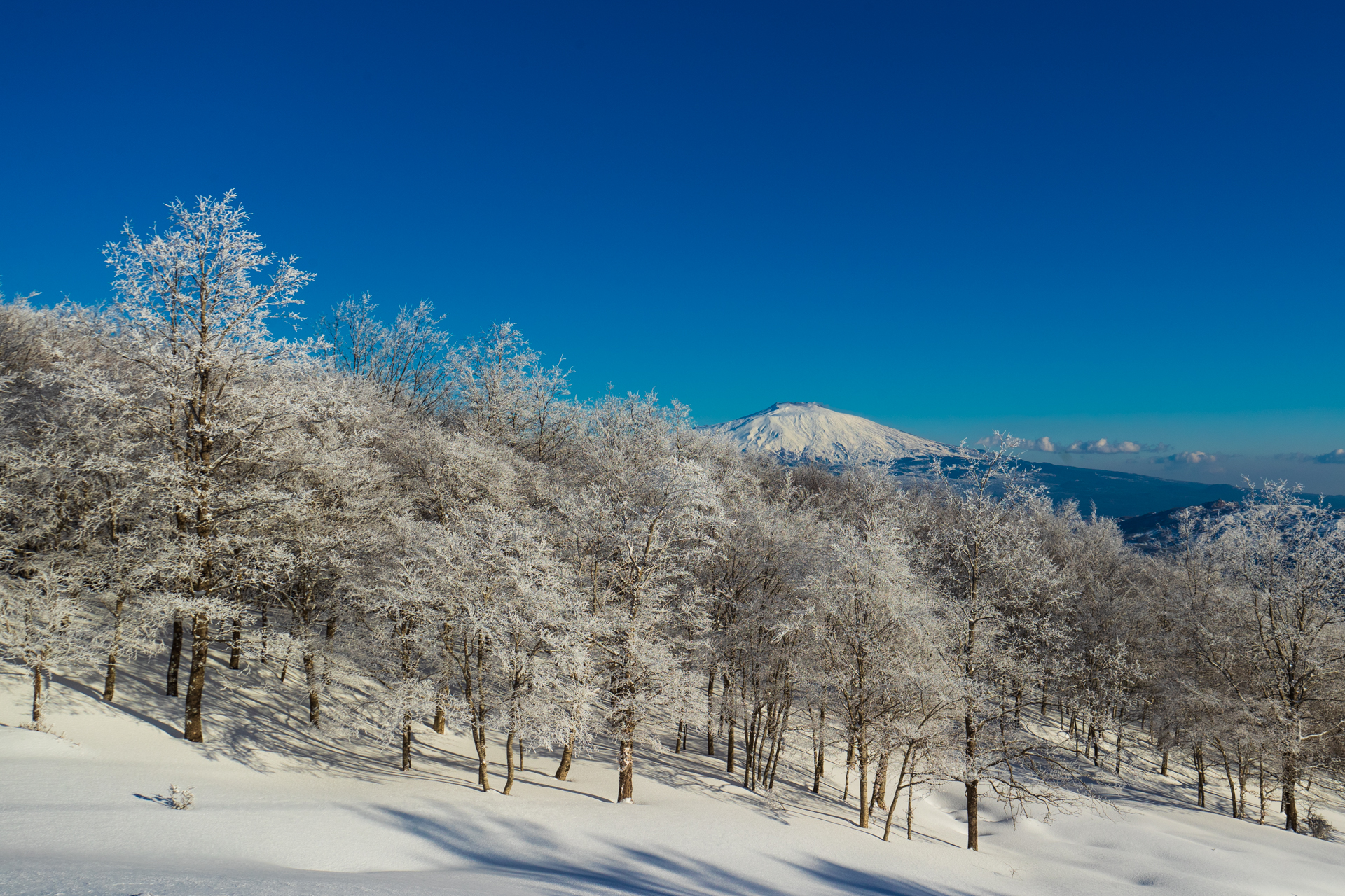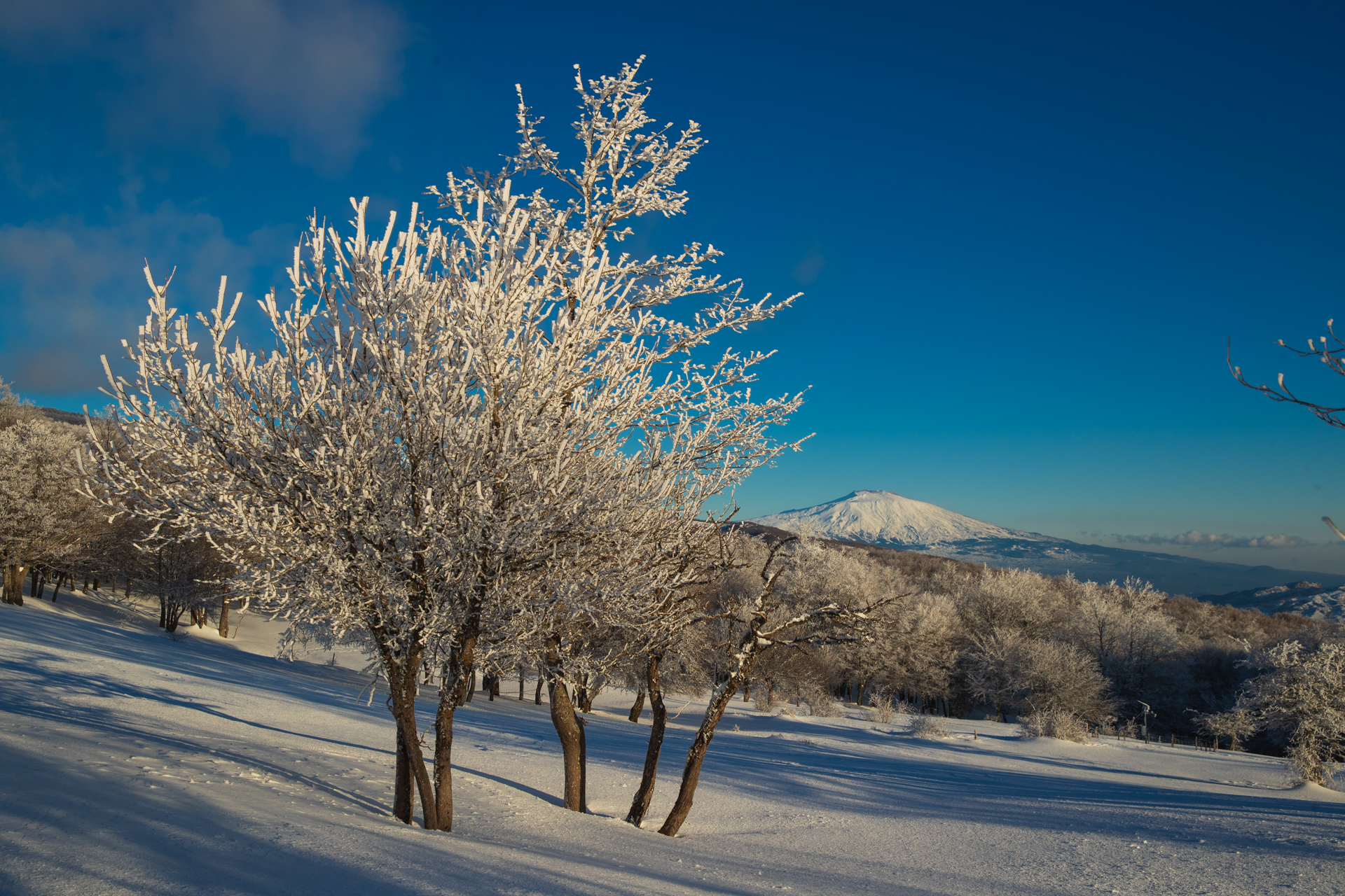 Oh Etna, ammirarti ancora una volta, in mezzo a quei rami cotonati dal gelido candore, è sempre un’autentica e limpida scoperta.