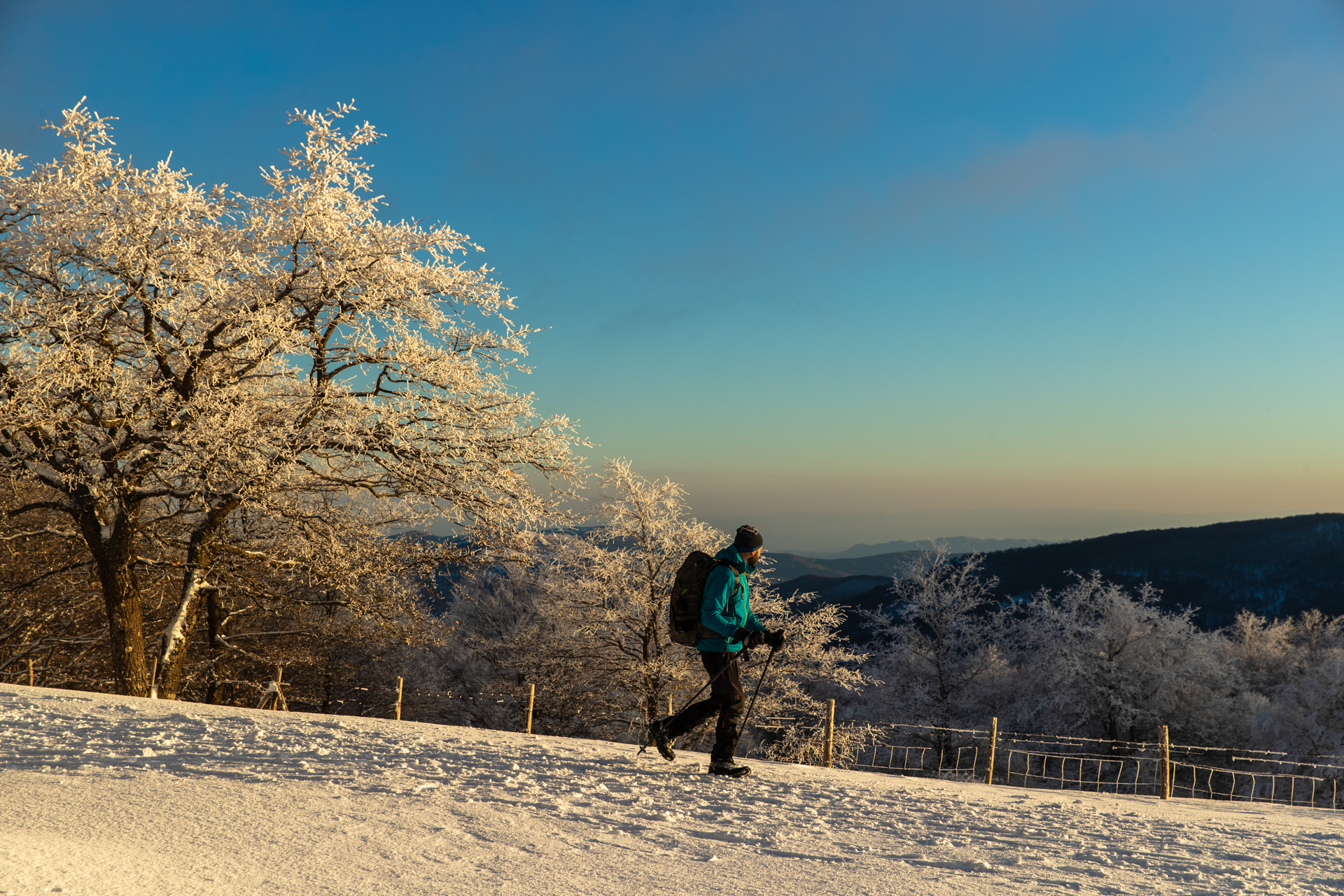 Passi che si rincorrono, orme che si moltiplicano copiose lungo le sconfinate praterie dei Nebrodi vestite di un bianco e soffice manto.