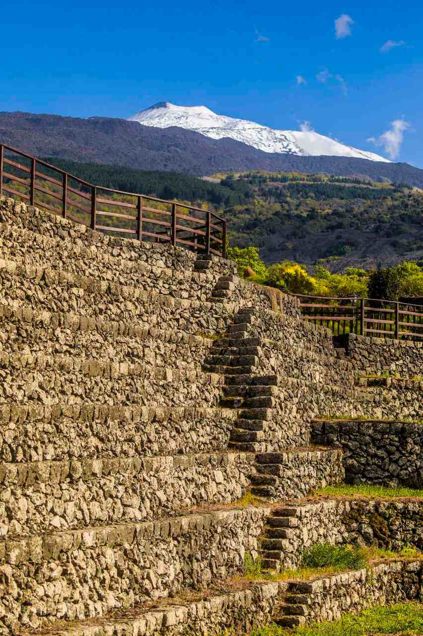 Etna, muretti a secco con le scale in pietra lavica della pietrai a Piramide nell’agriturismo Quota Mille