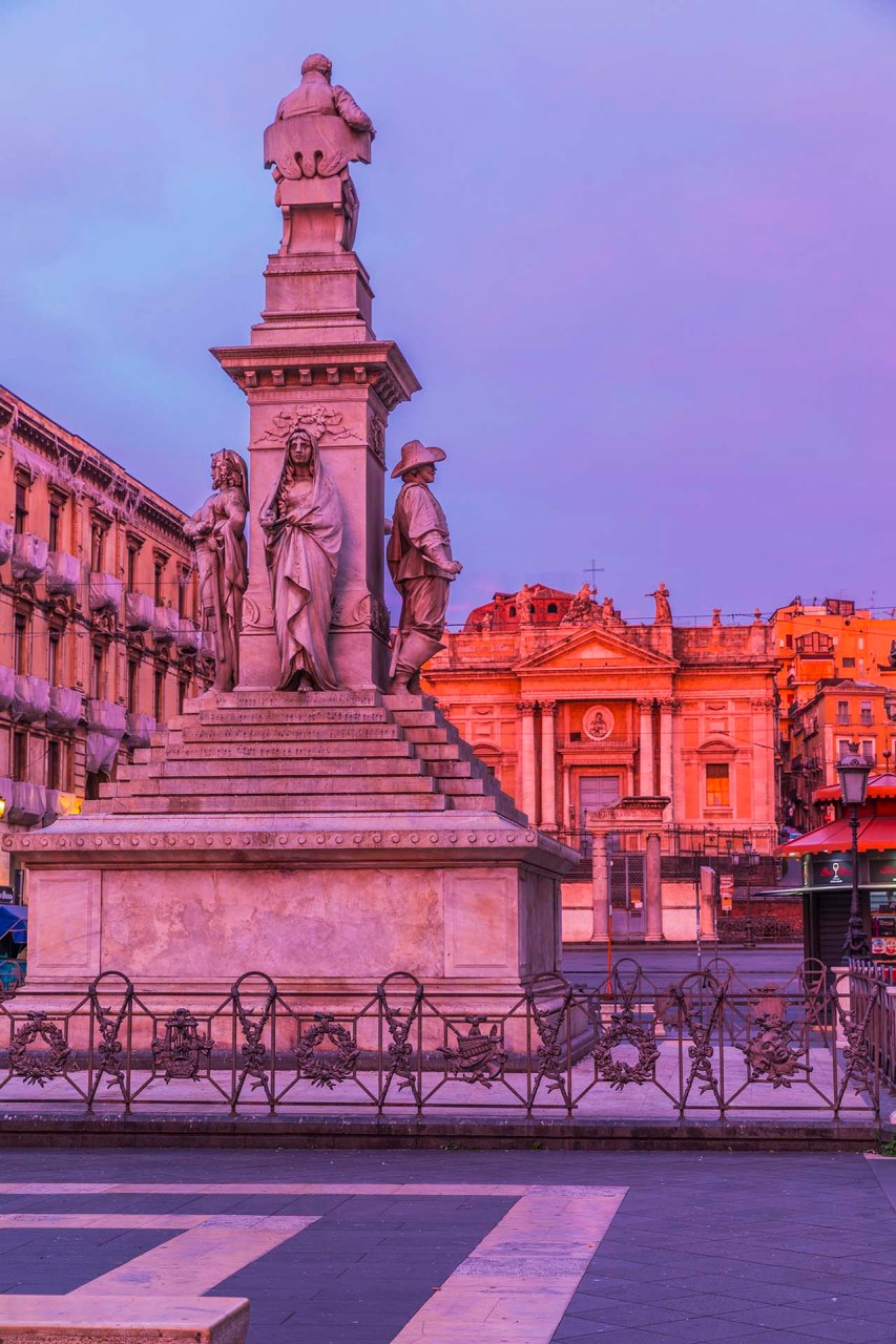 E poi nel centro della piazza che guarda verso la vivace via Etnea, ecco stagliarsi la statua dedicata a Vincenzo Bellini, eretta in onore del celebre compositore catanese, uno dei figli più illustri di Catania, il cui genio musicale ha conquistato il mondo.