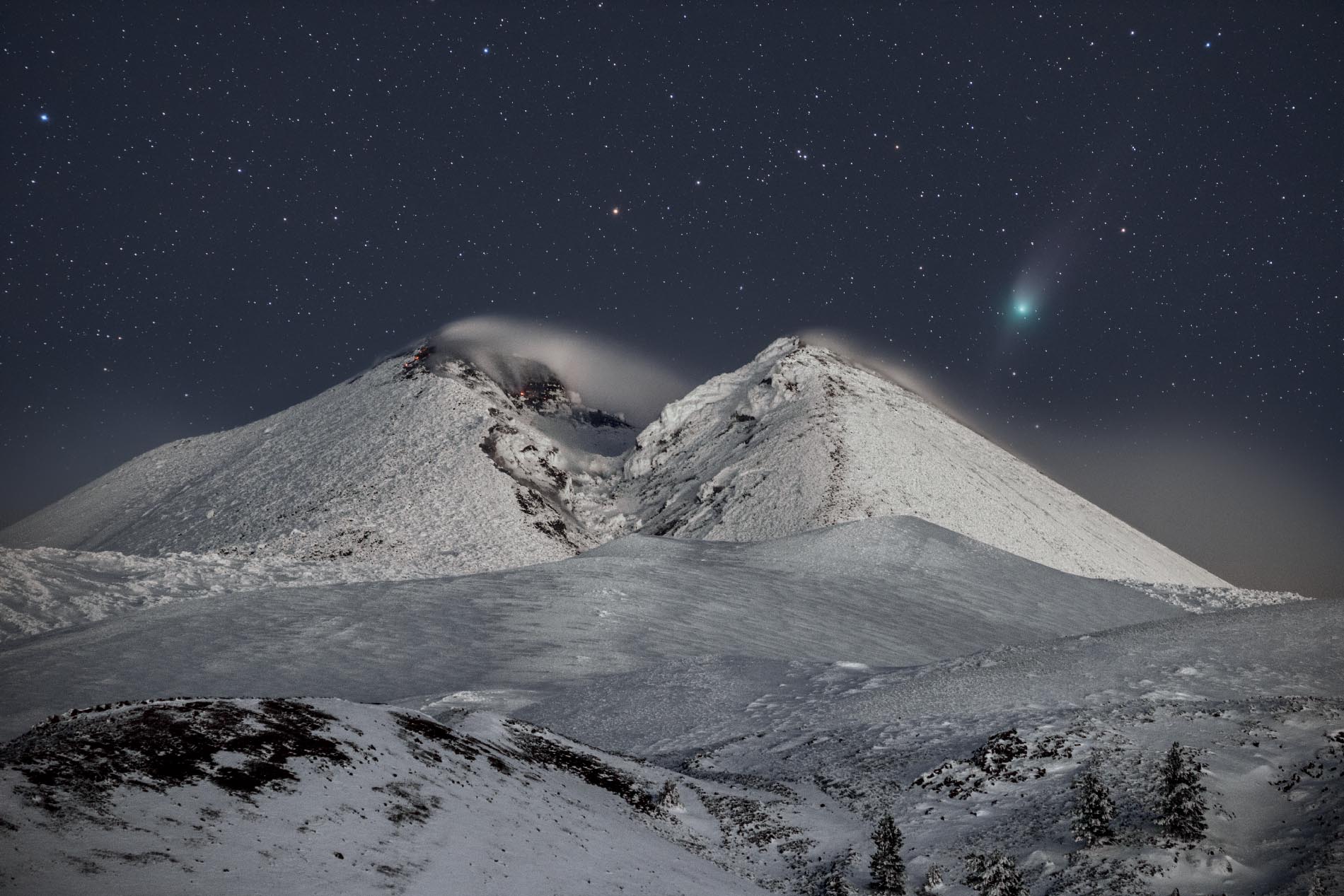 Luna Sul Cratere di Sud Est dell’Etna