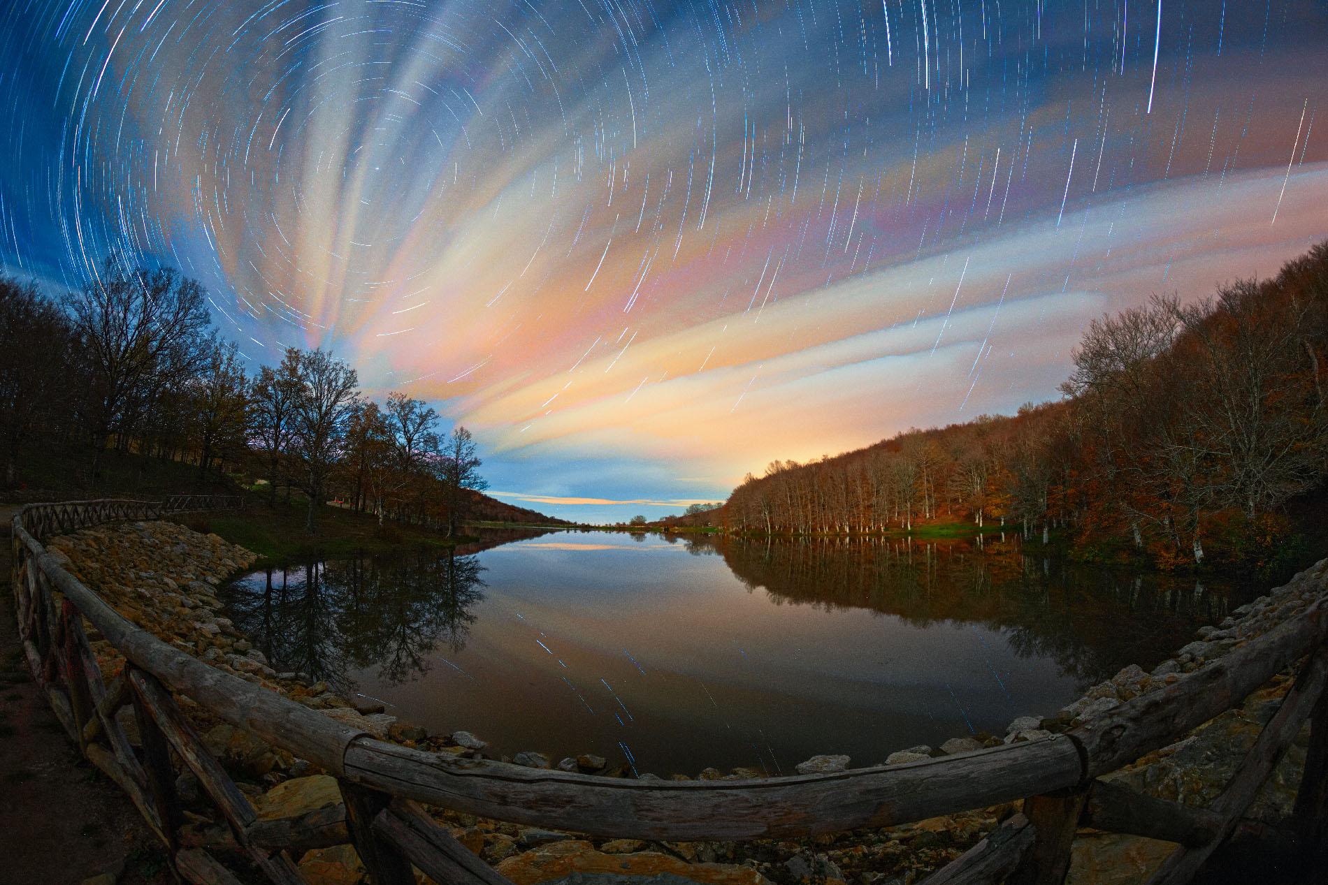 Star Trail Riflesso Su Lago Biviere Di Cesarò