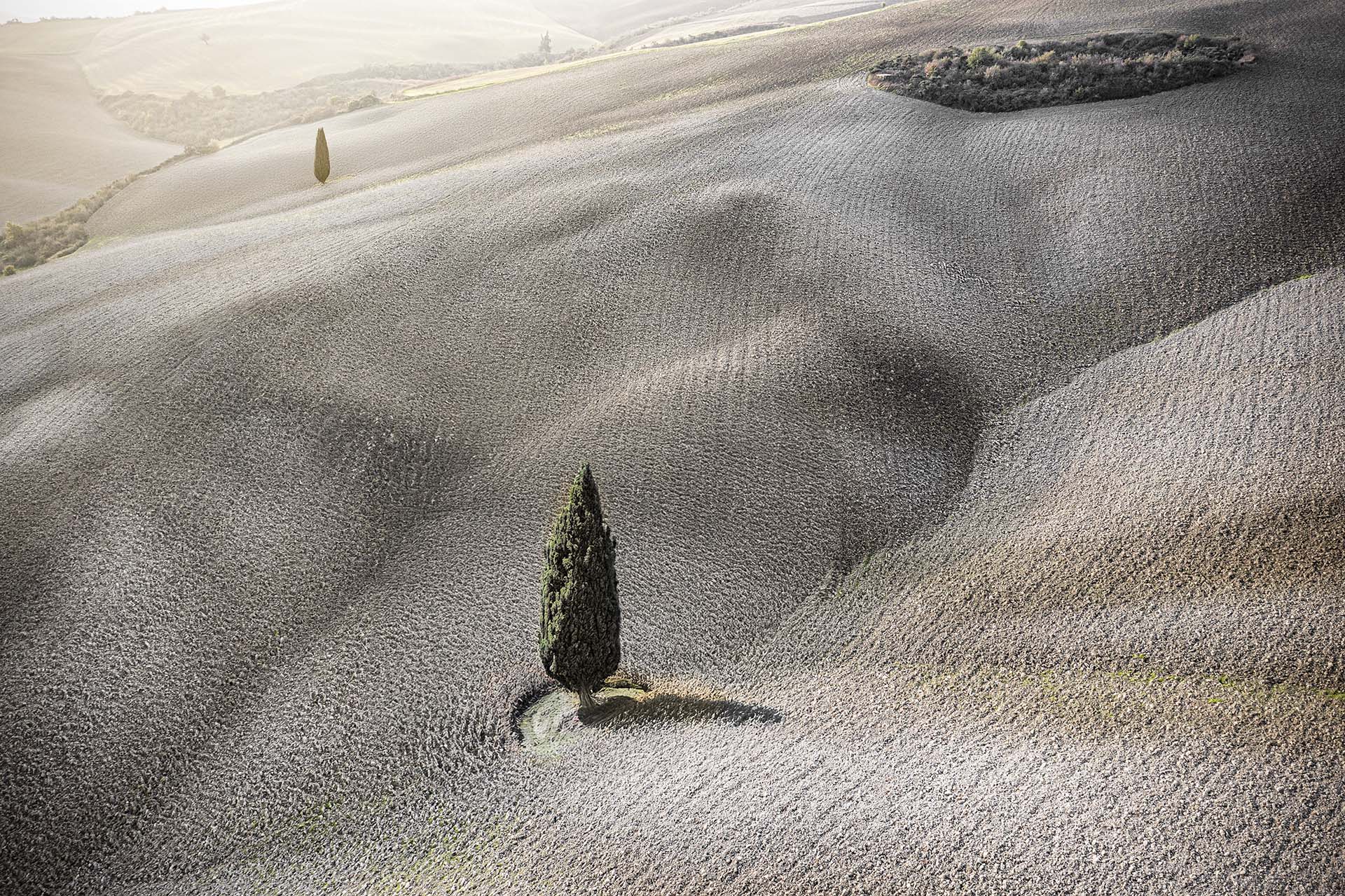 Cipressi solitari, simbolo della Val d’Orcia in Toscana.