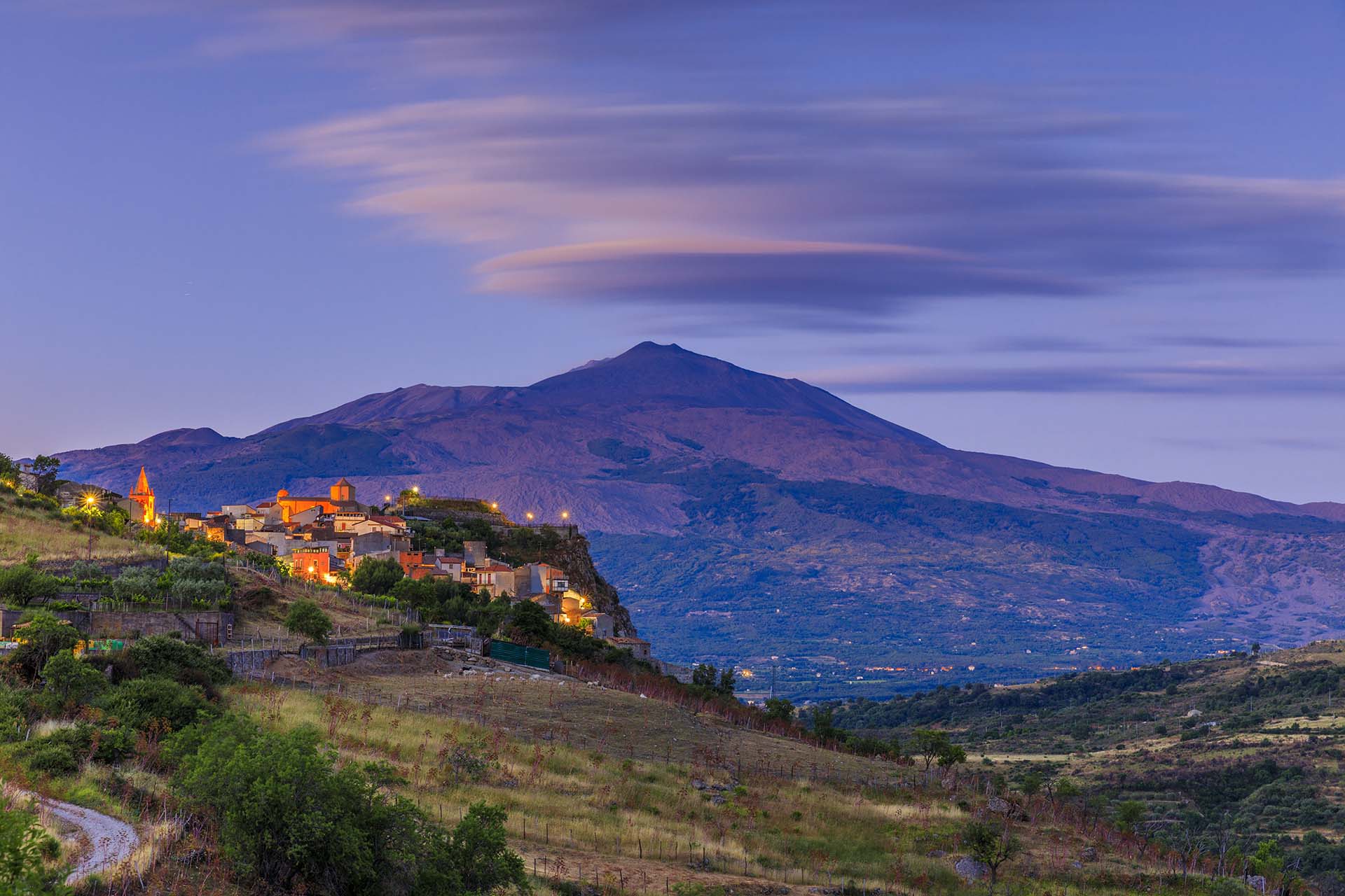 Photo by © Alessandro Saffo 2024 – All rights reserved. Versante nord est dell’Etna con la formazione di una nuvola lenticolare, Contesa dei Venti, chiamata a Cuntissa dalla popolazione locale