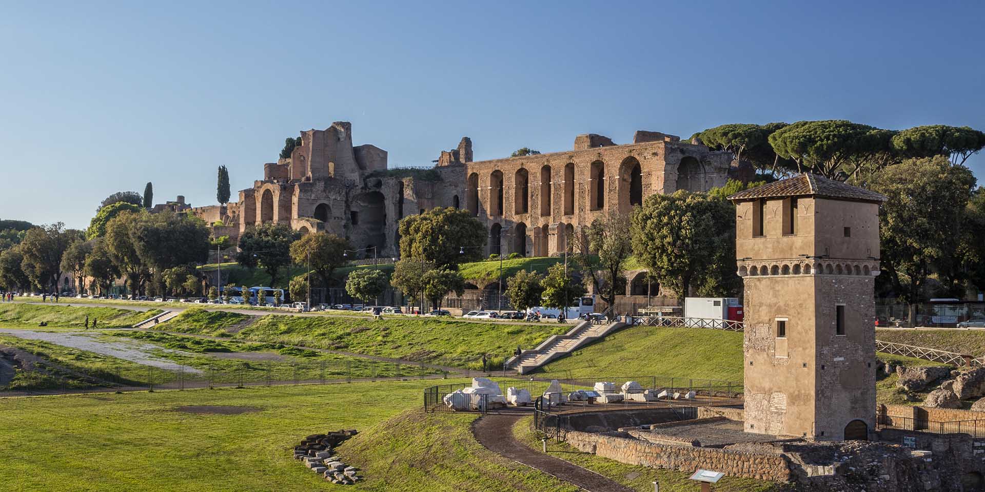 Le Arcate Severiane del Colle del Palatino e il Circo Massimo a Roma.